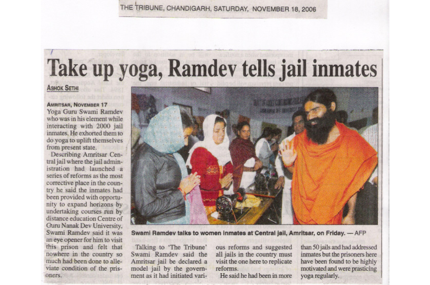 Swami Ramdevji visits Amritsar Prison